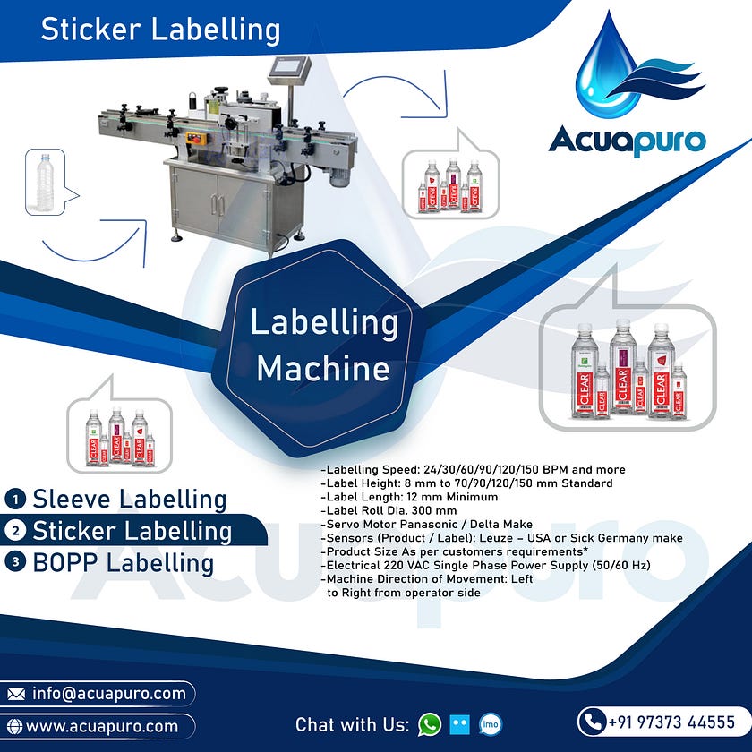 automatic sticker labeling machine from Acuapuro Water Equipment India Pvt. Ltd. is the right choice. Explore our range of high-performance labeling solutions today.
